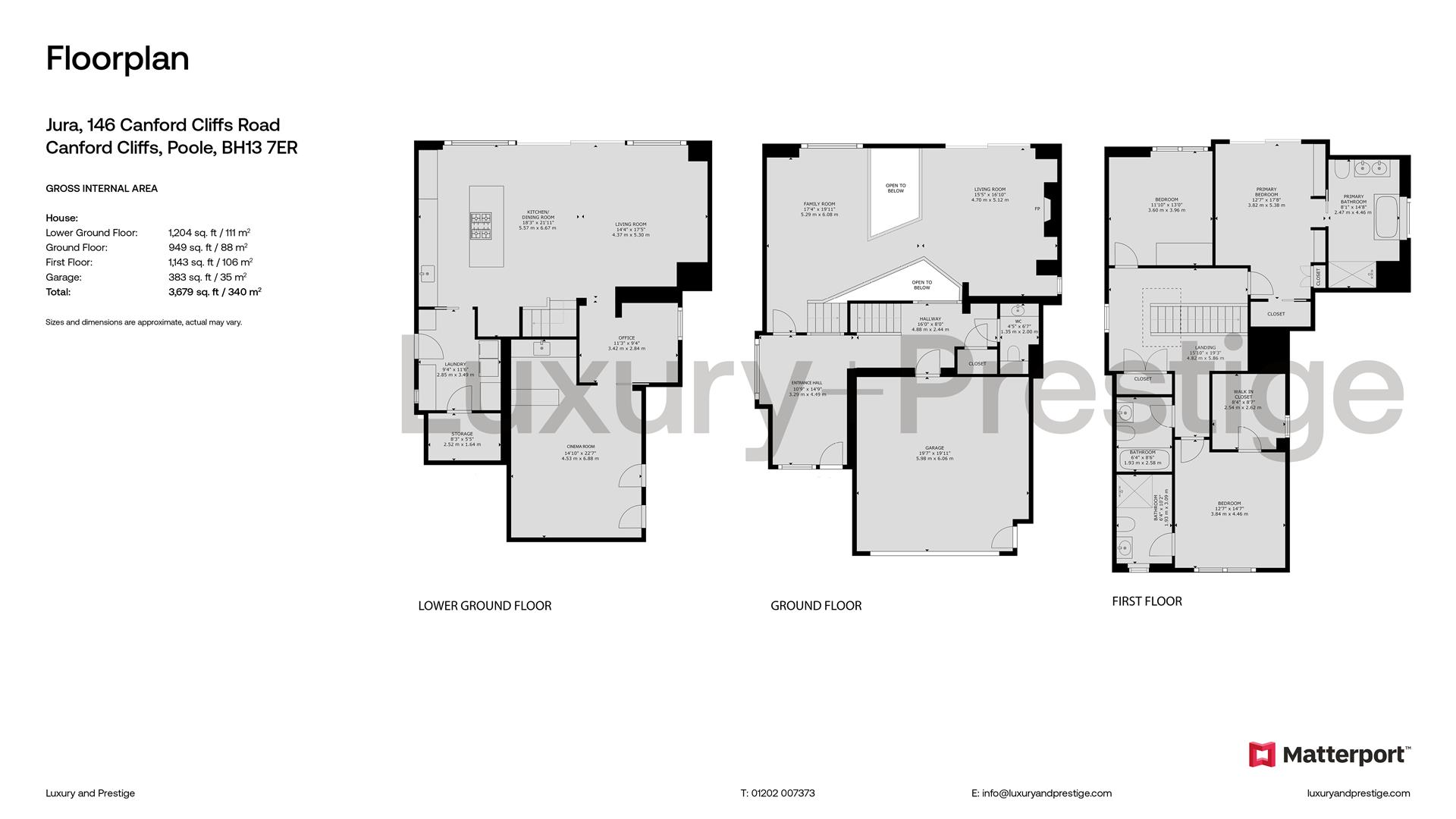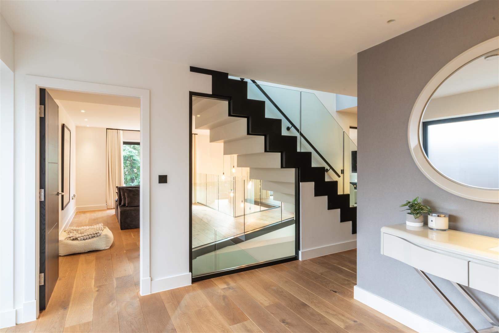 Jura was built by the award-winning developer Mya Casa. It's ideally located near the amenities of Canford Cliffs village and the renowned Parkstone Golf Club. Beaches and the shores of Poole Harbour are also within easy reach, offering even more opportunites for leisure and relaxation. Arranged over three floors and extending to almost 3,700 sq ft, the house combines striking architectural design with a high-quality, contemporary finish throughout. The living accommodation is nothing if not dramatic with sitting space one the ground galleried over the garden level floor and an amazing feature light over a double height void. The garden level features an impressive open plan kitchen family room which is comfortably zoned for informal sitting, casual dining, and a highly luxurious kitchen with stone stops, a centre island with breakfast bar and integrated appliances by brands such as Miele. Other luxuries includes a beautifully fitted out cinema with bar area and a study as well as programmable lighting. The decor has been subject to many upgrades by the current owners resulting in an interior design which is highly luxurious and beautifully presented throughout. Outside the garden features a private sun terrace connecting to the well maintained lawn whilst at the front generous and secure driveway connects to the 6m double garage.