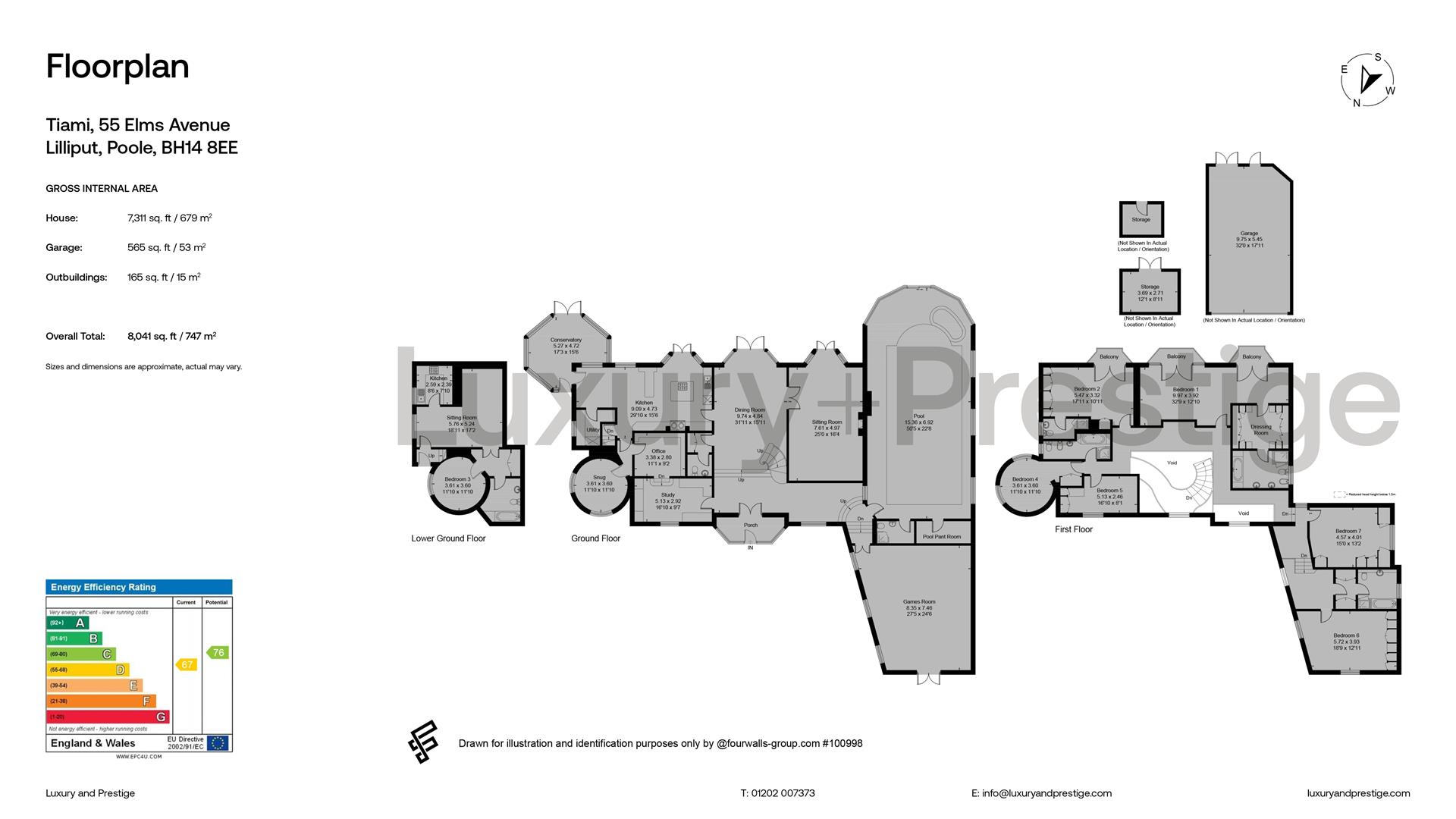 Tiami is a rare commodity and it commands arguably one of the finest waterfront plots anywhere on the south coast, including the nearby Sandbanks Peninsula. The house was constructed for the current owner with built form extending to just over 8,000 square feet. There is a total of seven bedrooms and five bathrooms which includes a self contained guest suite. There is a choice of sitting areas and leisure amenities that can only be described as impressive including a large indoor swimming pool complex and a games room, currently utilised with a full sized billiards table. The galleried reception hall also benefits from a stunning radius staircase. Step outside and the unique properties of Tiami are immediately evident for all to see. The grounds are truly exceptional with a sunny aspect and unique frontage to Poole Harbour which extends to approximately 170 ft. It commands uniquely impressive views with extensive terraces and meandering pathways on various levels leading all the way down to the waterfront. This exceptional marine home would be perfect for incoming purchasers to re-imagine and remodel or alternatively it might be the spot to build a landmark "super home" subject to the necessary consents.