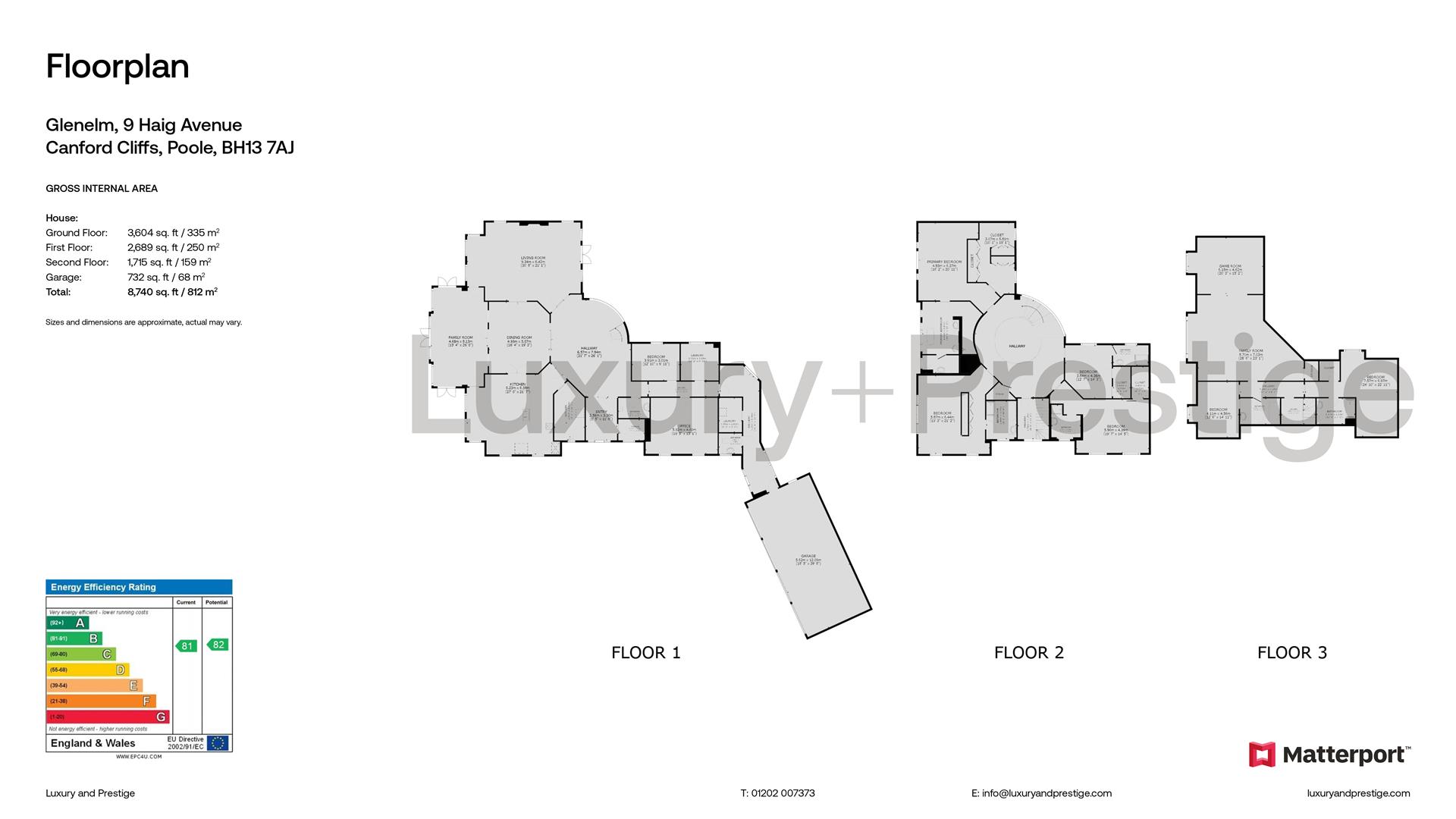 Situated behind a gated entrance and at the end of a sweeping driveway Glenelm is unquestionably elegant and impressive. The reception hall boasts a wonderful bespoke radius staircase leading to a circular gallery with a vaulted ceiling above. Everything is on a grand scale from the size of the rooms, to the high ceilings and the wonderful hardwood sash windows. The built form extends to 8,740 sq ft comprising six bedrooms, six bathrooms, a choice of magnificent receptions plus his and her offices. The quality of appointments is exceptional including the luxury fitted kitchen by Mark Wilkinson and the elegant fitted furniture in the master suite which features a pediment. With six bedrooms and six bathrooms there is no shortage of guest accommodation and the top floor could even form an extensive suite of rooms on its own. The orangery is a later addition and in an optimal position to enjoy the sun on the Southwest elevation and to take in the views of Parkstone Golf Club. Presented in impeccable order throughout this is a rare opportunity for those who demand the very best to acquire an important home of outstanding quality. Additions by the current owner include a purpose built garden room adjacent to the private sun terrace and as an added layer of luxury there is garaging for up to four cars.