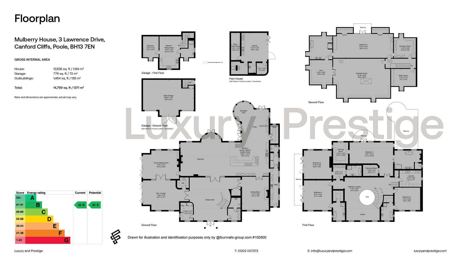 Mulberry House is one of the most notable and important properties on the South Coast. It forms a gated estate with tended grounds backing onto Parkstone Golf Course extending to around 1.8 acres tucked away from prying eyes in one of the most exclusive cul-de-sacs in Canford Cliffs. The built form of the main residence extends to just over 12,500 square feet but there is an additional triple garage with guest apartment, a pool house and a gate house in the form Little Berry meaning the total built form extends to 15,665 square feet. Harbour glimpses from the top floor hint at the proximity of Poole Harbour and of course the Sandbanks Peninsula, famous for its wonderful beaches and affluent lifestyle. The main dwelling affords a huge sense of arrival and the interior, and although grand in scale, is both welcoming and homely. The current owners have made significant investments in the interior design and landscaping, making this even more of a statement home. The potential for entertaining and leisure is unmatched thanks to the large outdoor swimming pool and the options for hosting inside.