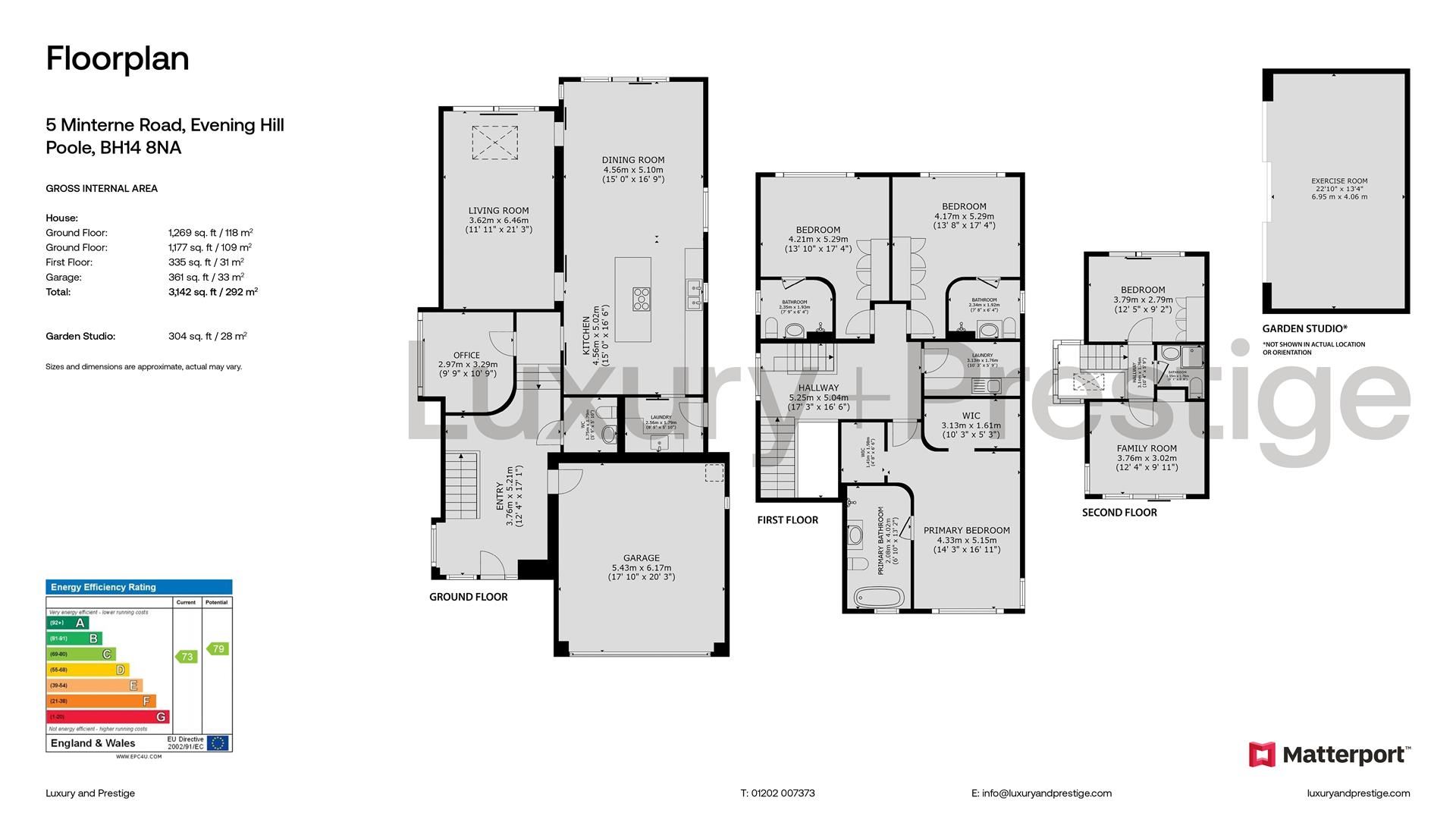 A great contemporary home, completed in 2021 by a highly regarded local developer. It's located in a sought after road just off Evening Hill known for its close proximity to the Evening Hill View Point and Poole Harbour beyond. It is especially spacious with built form extending to around 3,140 square feet plus a large garden studio which is currently utilised as a gymnasium. The entrance hall is light and airy with a feature staircase constructed with cantilevered treads and a glass balustrade. The open plan lifestyle room connects to the rear patio via large format patio doors and it is especially stunning due to its extraordinary high ceilings and feature lighting. This amazing space is 33' in length and zones conveniently for kitchen, informal dining and relaxed sitting. The luxury kitchen is hand painted with a centre island and breakfast bar, stone tops and a whole host of integrated appliances. The formal sitting area is accessed via pockets doors and also connects to the rear terrace. There is a total of four bedrooms and four bathrooms although a reception could double as bedroom five. On the ground floor there is an all-important home office. The rear garden is landscaped for low maintenance and in addition to a 6 metre double garage there is generous guest and casual parking on the driveway.