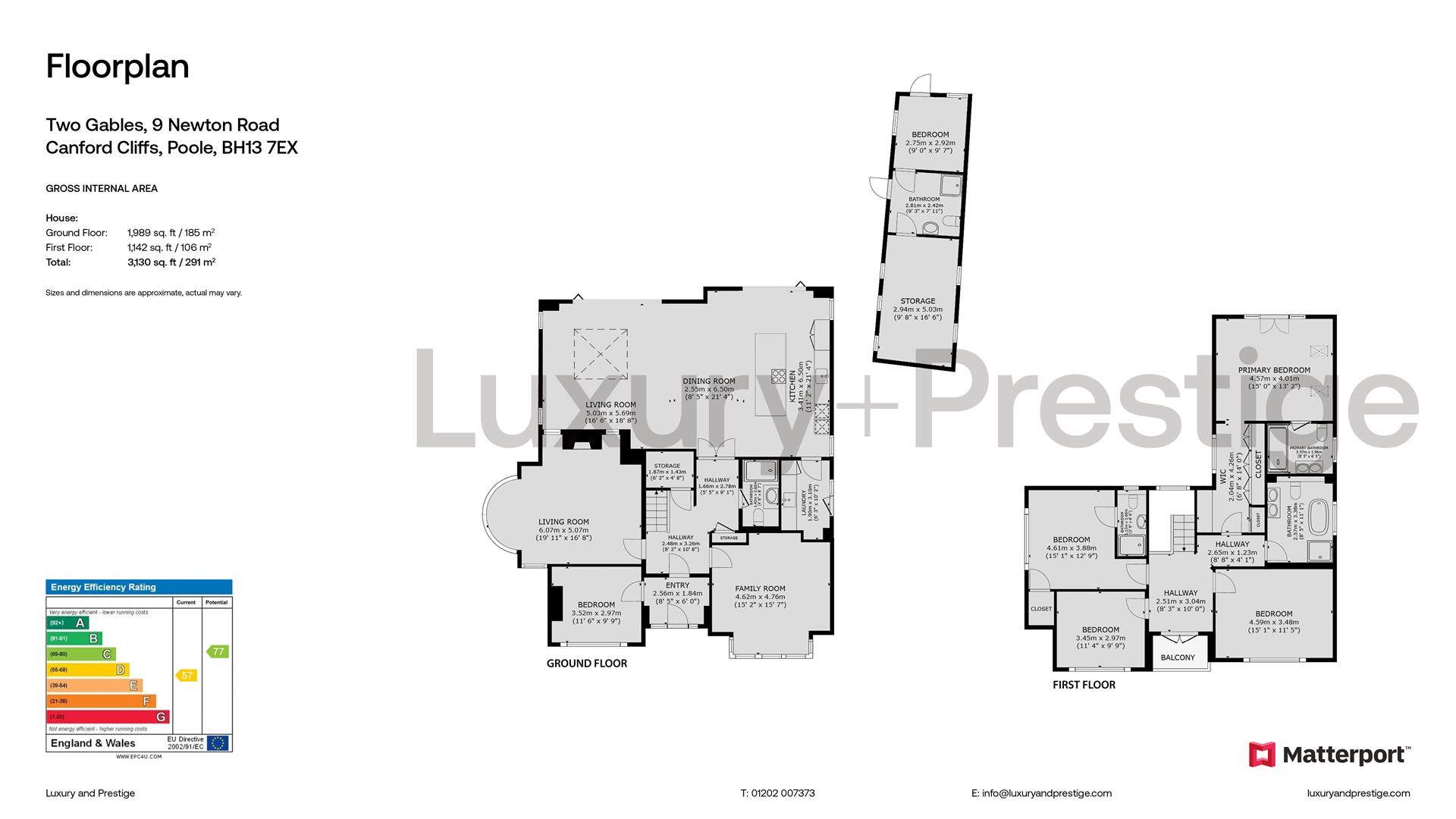 Newton Road is an especially favoured location. The street scene is leafy and spacious yet it is just a short and level walk from the shopping parade at Canford Cliffs Village. On the south side of the village there is access to some of the area's most beautiful beaches via Canford Cliffs Chine. Such a generous plot is rare so close to these amenities so this could be ideal as either a lifestyle or a family home. This traditional home - aptly named due to its twin gables - has been beautifully extended, remodelled and enlarged by the current owners to a very high standard with a decor that is very stylish and a layout which is modern and versatile. There are four / five bedrooms and four bathrooms (including one downstairs) and a choice of receptions but the star of the show is open plan kitchen family room which zones conveniently for kitchen, complete with centre island and breakfast bar, informal sitting and dining, the whole of which opens on to the impressive private sun terrace and the garden beyond. As well as a superb level lawn there is a detached outbuilding / garage which is used as a combined guest suite facing the grounds. There is an impressive frontage and significant space for casual and guest parking.
